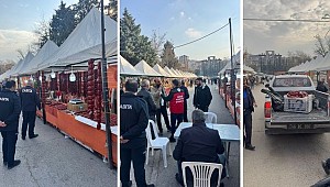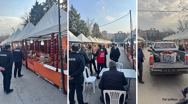 Ekipler, son denetim sırasında Yöresel Çarşı olarak kurulan bir pazarda sucuk satışı gerçekleştiren firmayı kapsamlı incelemeye aldı.
