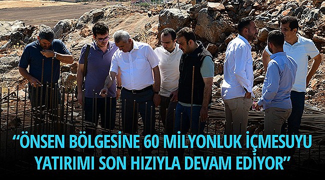 Kahramanmaraş Büyükşehir Belediye Başkanı Sayın Hayrettin Güngör, öncülüğünde Onikişubat ilçemize bağlı Önsen mahallemizde 05.10.2022 tarihinde proje kapsamında yapımına başladığımız, toplamda 70.000 metre içme suyu hattı, 1 adet 1500 metreküp,1 adet 900 metreküp, 1 adet 300 metreküp ve 2 adet 100 metreküp kapasiteli olmak üzere toplam 5 adet içme suyu depo yapım çalışmalarımız tüm hızıyla devam ediyor.