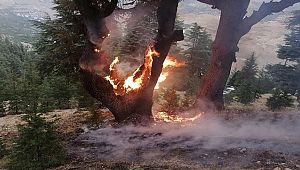Kahramanmaraş’ın yüksek kesimlerinde akşam saatlerinde etkili olan sağanak yağış ve beraberindeki yıldırım, ormanlık alanlarda yangına neden oldu.
