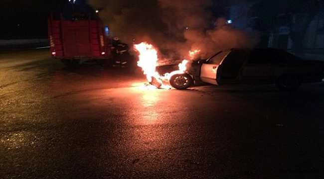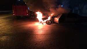 dönüşen otomobilden kendisini son anda dışarı attı. Otomobili saran alevlere