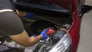 ekipleri, yaptıkları çalışmayla bir otomobilde uyuşturucu bulunduğunu tespit