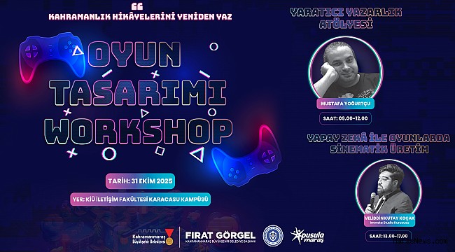 31 Ekim Cuma günü düzenlenecek Oyun Tasarım Atölyesi, Kahramanmaraş İstiklal Üniversitesi İletişim Fakültesi Karacasu Kampüsü’nde 09.00 – 17.00 saatleri arasında gerçekleştirilecek. Gün boyu sürecek etkinlikte, katılımcılar farklı disiplinlerden uzmanlarla bir araya gelerek hem teorik hem de uygulamalı çalışmalar gerçekleştirecek. Atölyeye katılmak isteyen gençler, https://kahramanmaras.bel.tr/duyuru/2025/10/22/oyun-tasarimi-atolyesi-basvuru-formu adresi üzerinden çevrimiçi başvuru yapabiliyor.
