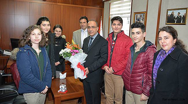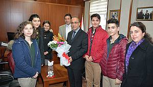 Öğretmenleri, öğrencileriyle birlikte Emniyet Müdürü Doğan İnci’yi makamında