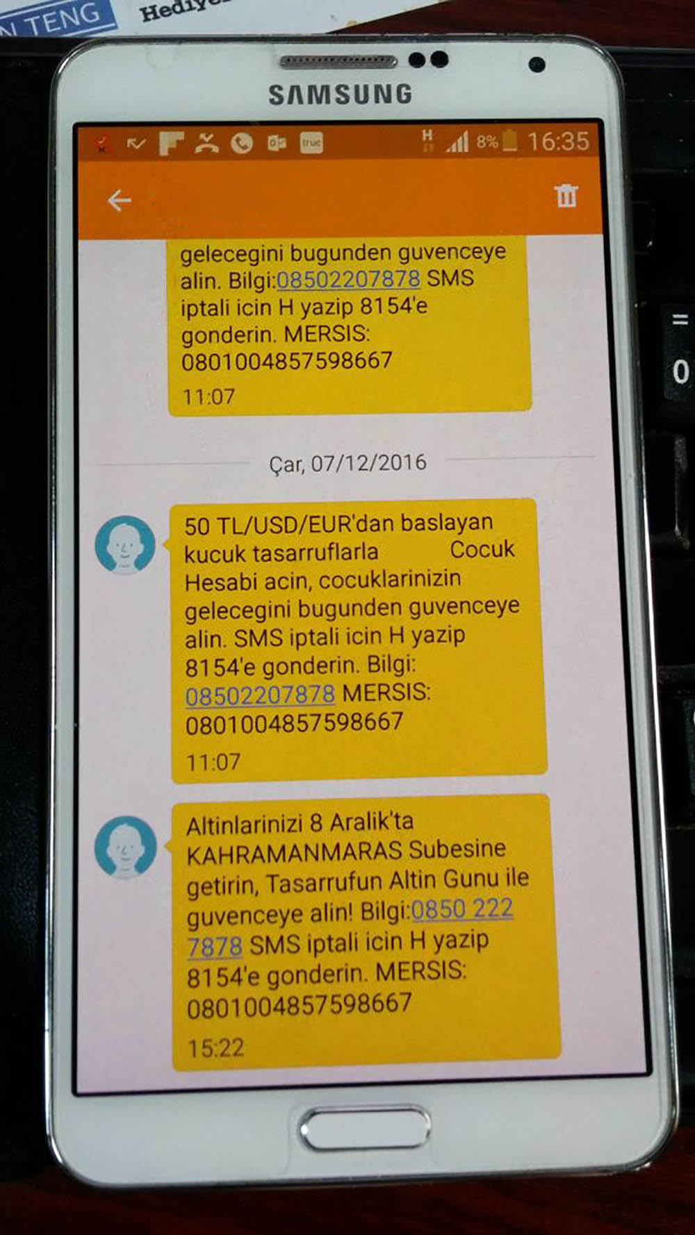 Özel bir bankanın 7 Aralık Çarşamba günü vatandaşlara attığı mesajda; 50 TL, USD ve Euro’dan başlayan küçük tasarruflarla hesap açın ifadesi, “Bankalar, ‘Dövizini Bozdur’ kampanyasına destek vermiyor mu” sorusunu akıllara getirdi. Okullardaki kız öğrencilerin dahi destek verdiği kampanyaya bankaların ilgisiz kalması, toplum nezdinde rahatsızlık uyandırdı. Vatandaşlar, bankaların döviz bazlı yatırım türlerini teşvik edici kampanyalarının, Cumhurbaşkanı Erdoğan’ın ülke ekonomisini güçlendirmek için Türk Lirası’na yönelme politikasına zarar vereceği görüşünü paylaştılar. (KENAN ONARAN)