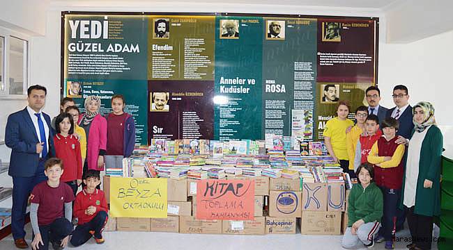 okullara gönderilmek üzere toplanan kitapları 5,6,7,8. Sınıf öğrencilerimiz