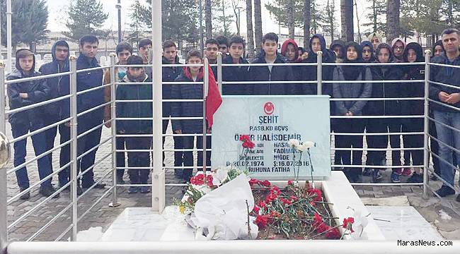 Okul Müdür Yardımcısı ve Tarih Öğretmeni Hacı Bilal Şen, şehidin kabri başında yaptığı konuşmada şunları söyledi:” değerli öğrenciler 15 Temmuz demokrasiye, millete darbe girişimi tıpkı milli mücadele olduğu gibi yine millet tarafından püskürtüldü. Bu hain plan karşısında yüce milletimiz canını, malını hiçe sayarak kadın-erkek, yaşlı-genç demeden tankların, uçakların, silahların ve hainlerin karşısına dikildi. Türk Milleti’nin kaderinde rol oynayan bazı kahramanlar vardır. Ömer Halisdemir’de o kahramanlardan biridir. Sizlere T.C İnkılâp Tarihi ve Atatürkçülük dersimizin 1 saatini Niğde ‘de yapacağız demiştim işte buradayız. Cumhuriyetçilik ilkesinin tamamlayıcı ilkeleri halkçılık ve milliyetçiliktir. Halk mutlu, huzurlu olmaz ise; tek bayrak, tek vatan için üzüntü ve keder de bir olmaz ise rejimin adının ne olduğunun ne önemi var. Değerli gençler: ülkemize her zamankinden daha fazla sahip çıkmalı, Türkiye’nin içte ve dışta dost ve düşmanlarını çok iyi tanımalıyız. Bunun içindir ki, tarih okumalıyız. Unutmayın tarihini bilmeyenlerin, coğrafyasını başkaları çizer” dedi.
