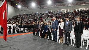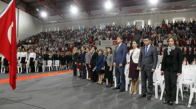 ile kutladı. İlkokul korosu ve lise orkestrasının seslendirdiği marşlarla devam