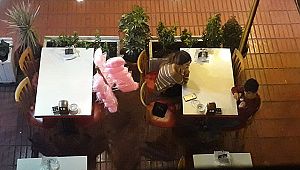 Çocukla aynı masaya oturan genç kadın, çocuğa yemek ısmarlayarak sohbet etti. Çocuğa cep telefonundan çizgi film de izlettiren kadın, daha sonra hesabı ödeyerek çocukla lokantadan ayrıldı. (AA)