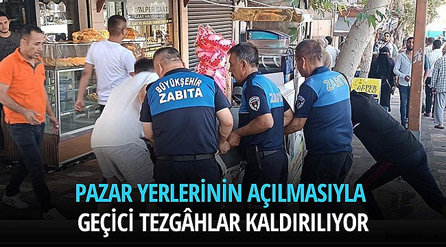 Kahramanmaraş Büyükşehir Belediyesi, deprem sonrası normalleşme çalışmaları kapsamında şehir merkezinde kurulan geçici tezgâhları yeniden açılan pazar yerlerine yönlendirmeye başladı. Uygulamanın yapıldığı Demokrasi Meydanı’nda yaya geçişlerinde aksamalara neden olan tezgâhlar tek tek kaldırılırken alanın temizliği de yapıldı. Büyükşehir Belediyesi Zabıta Dairesi Başkanlığı’ndan yapılan açıklamada, “Şehir merkezinde konumlanan ve vatandaşlarımız tarafından şikâyet konusu olan tezgâhlar, pazar yerlerinin açılmasıyla kaldırılmaya başlandı. Ekiplerimiz esnafı pazar yerlerine yönlendiriyor. Şehir genelinde uygulamalarımızı sürdüreceğiz” ifadelerine yer verildi.