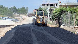 bilinen alanda sıcak asfalt çalışması gerçekleştiren ekipler yapılan çalışmada