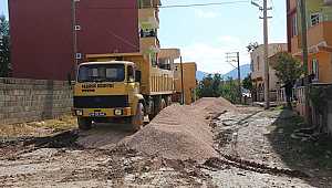 Topel ve Fatih Mahallelerimizde zemin malzeme serme çalışmalarını sürdürüyoruz.