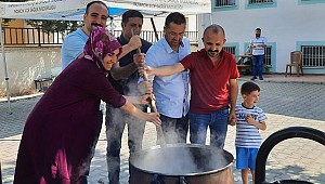 Bin kişilik hazırlanan aşure etkinliğinde, İlçe Sağlık Müdürü Dr. Halil İbrahim Çalışır, vatandaşlara ve personellere aşure dağıttı.