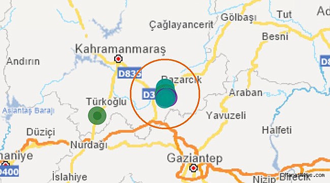 Afet ve Acil Durum Yönetimi Başkanlığı Deprem Dairesi Başkanlığı (AFAD) verilerine göre, saat 15.13’de Pazarcık ilçesinde yerin 7.73 kilometre derinliğinde 3.8 şiddetinde sarsıldı.