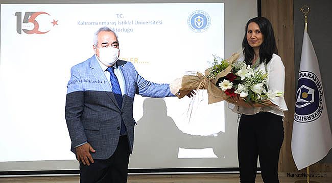 Konferansın ardından Rektör Özgül tarafından Dr. Öğr. Üyesi Durdane Gümüşten’e çiçek takdim edildi. Konferansa, Kahramanmaraş Sütçü İmam Üniversitesi Rektör Yardımcısı Prof. Dr. Kadir Saltalı, KİÜ Rektör Yardımcıları Prof. Dr. Adnan Küçükönder ve Prof. Dr. Nuri Kahveci ile akademik ve idari personel katıldı.