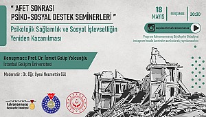 Asrın felaketi sonrası depremzedelerde meydana gelebilecek olası travmaları en aza indirmek için farklı yaş gruplarına yönelik faaliyetlerini sürdüren Kahramanmaraş Büyükşehir Belediyesi, Kahramanmaraş Sütçü İmam Üniversitesi ve Aile ve Sosyal Hizmetler İl Müdürlüğü’nün de destekleriyle hayata geçirdiği ‘Afet Sonrası Psiko-Sosyal Destek Seminerleri’ni sürdürüyor. Etkinlik takvimi kapsamında, 18 Mayıs Perşembe günü İstanbul Gelişim Üniversitesi Öğretim Üyesi Prof. Dr. İsmet Galip Yolcuoğlu’nun katılımıyla ‘Psikolojik Sağlamlık ve Sosyal İşlevselliğin Yeniden Kazanılması’ konulu eğitim semineri düzenlenecek. Büyükşehir Belediyesi’nin Instagram hesabından canlı yayınlanacak seminer, saat 20.30’da başlayacak. Büyükşehir Belediyesi’nden yapılan açıklamada, seminere tüm vatandaşların davetli olduğu belirtildi.