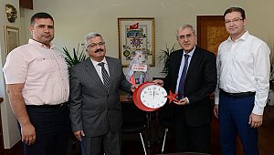 Karşılıklı görüş alışverişinde bulunulan ziyaretin anısına Kahramanmaraş PTT Başmüdürü Ali Kaplan Rektör Can’a PTT logolu duvar saati hediye ederken, Rektör Can da PTT Başmüdürü Kaplan’a KSÜ logolu duvar saati hediye etti.