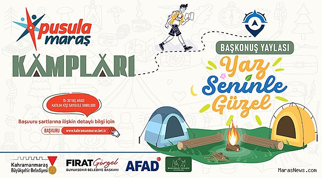 Kahramanmaraş Büyükşehir Belediyesinin gençlerin sosyal, kültürel ve kişisel gelişimlerine katkı sunmak amacıyla hayata geçirdiği “Pusula Maraş Kampları”, doğayla iç içe macera dolu bir etkinlikle gençleri buluşturmaya devam ediyor. 15 – 30 yaş aralığındaki gençlere yönelik düzenlenen kamplarda katılımcılar, doğayla iç içe vakit geçirme fırsatı buluyor. Düzenlenecek etkinliklerle gençlere eğlenceli ve öğretici bir deneyim sunulurken aynı zamanda doğa yürüyüşleri, kampçılık eğitimleri, takım oyunları ve çeşitli macera aktiviteleri gerçekleştirilecek. Katılımın ücretsiz olduğu kamp için gençler, https://kahramanmaras.bel.tr/duyuru/2025/06/27/pusula-maras-kamplari-basvurusu internet adresinden çevrimiçi başvuru yapabiliyor.