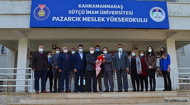 Pazarcık Kaymakamı Dr. Adil Nas ve Pazarcık Belediye Başkanı İbrahim Yılmazcan’ı makamlarında ziyaret ederek bir süre görüşen Rektör Can, Pazarcık’ta yürütülen ve planlanan eğitim ve gençlik projelerine ilişkin görüş alışverişinde bulundu. Rektör Can, Pazarcık MYO’na verdiği destekler için Pazarcık Belediye Başkanı İbrahim Yılmazcan’a teşekkür plaketi takdim etti.