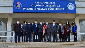Daha sonra KSÜ Pazarcık Yerleşkesini ziyaret ederek incelemelerde bulunan Rektör Can, Pazarcık MYO personeli ile bir araya geldi. Yürütülen faaliyetlere ilişkin Pazarcık MYO Müdürü Dr. Öğretim Üyesi Mehmet Fetih Yanardağ’dan bilgi alan Rektör Can, Pazarcık MYO Konferans Salonunda akademik ve idari personelle toplantı gerçekleştirdi. Toplantı kapsamında uzaktan eğitim süreci, yürütülen ve planlanan akademik projeler, çevrim içi olarak devam eden bilimsel, sosyal ve kültürel etkinliklere ilişkin konular değerlendirildi.