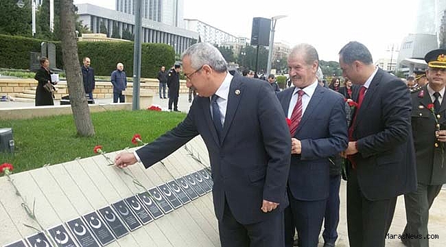 tarafından Bakü Türk Şehitliği abidesine çelenk sunmasıyla başlayan törende,