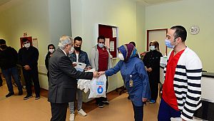ile hastane güvenlik personelini ziyaret eden ve yeni yıllarını kutlayan Rektör