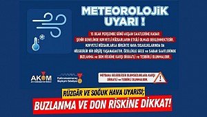 AKOM açıklamasında, sıcaklıkların düşmesiyle birlikte buzlanma ve don olaylarının görülebileceğine dikkat çekildi. Özellikle yüksek kesimler başta olmak üzere şehir genelinde ulaşımda aksamalar, kaygan zeminler ve olası olumsuzluklara karşı sürücülerin dikkatli olması istendi. Kuvvetli rüzgâr nedeniyle çatı uçması, ağaç ve direk devrilmesi gibi risklere karşı vatandaşların tedbirli olmaları ve olası olumsuzluklara karşı gerekli önlemlerin alınması gerektiği belirtildi. Ayrıca, soğuk hava ve don riskine karşı tarımsal faaliyetlerle uğraşan vatandaşların da dikkatli olmaları gerektiği vurgulandı.