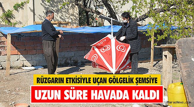 Şemsiyenin sahibi Ahmet Koç, gölgelik şemsiyenin bir kişinin başına düşmesinden korktuğunu anlatarak, "Rüzgarın etkisi kesilince şemsiye ilginç bir şekilde bahçemizin yanına düştü. İlginç anlar yaşadık." dedi. (AA)