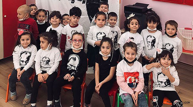 Sabriye Küncülü Anaokulu Arılar Sınıfı öğrencileri de öğretmenleri Eda Hançerli’nin Anlattıkları dinlediler ve şiirler okudular, Atatürk görseli önünde fotoğraf çektirdiler.