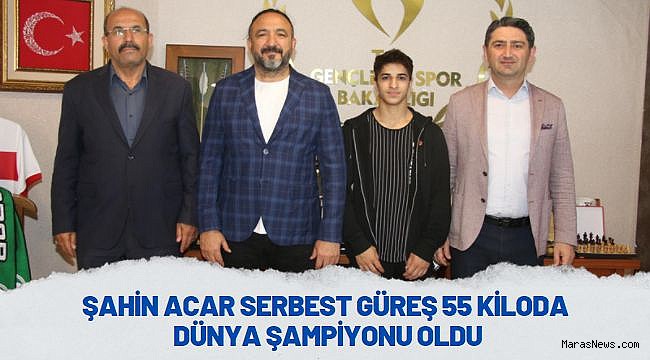 Şampiyon sporcumuz Şahin Acar, Kahramanmaraş Spor Lisesi Müdürü İsmail Gençoğlan ve Gençlik ve Spor İl Müdürlüğü Okul Sporları Birimi Şube Müdürü Yusuf Bayram Demirci, Şampiyona dönüşü Gençlik ve Spor İl Müdürü Cemil Boz’u ziyaret ettiler. İl Müdürü elde edilen başarıdan duyduğu memnuniyeti ifade ederek Sporcumuzu ve başarıya katkılarından dolayı Okul İdarecileri, Beden Eğitimi Öğretmenleri, Antrenörlerini tebrik ve teşekkür etti. İl Müdürü Cemil Boz ziyaret sonunda sporcumuza altın hediye ederek başarılarının devamı temennilerinde bulundular.