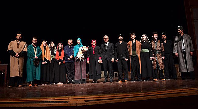 Kahramanmaraş Büyükşehir Belediye Başkanı Hayrettin Güngör, Sahne Maraş Tiyatro Okulu öğrencileri tarafından hazırlanan ‘Aşk İle Yoldaş’ oyununa katıldı. 2. Uluslararası Şiir ve Edebiyat Günleri etkinlikleri çerçevesinde Yunus Emre’nin konu edildiği oyuna, vatandaşlar da büyük bir ilgi gösterdi. İsmail Kılıçarslan’ın yazdığı ve Betül Alganatay’ın yönettiği oyun, sanatseverler tarafından yoğun alkış aldı. Düzenlenen tiyatro etkinliği sonrası sahnede çiçek takdim eden Başkan Güngör, “Edebiyatın başkenti Kahramanmaraş’ımızda Yunus Emre’nin hayatına dair imgeler barındıran nefis bir oyun izledik. Tüm oyuncularımıza ve yapım ekibimize teşekkür ediyorum” diye konuştu.