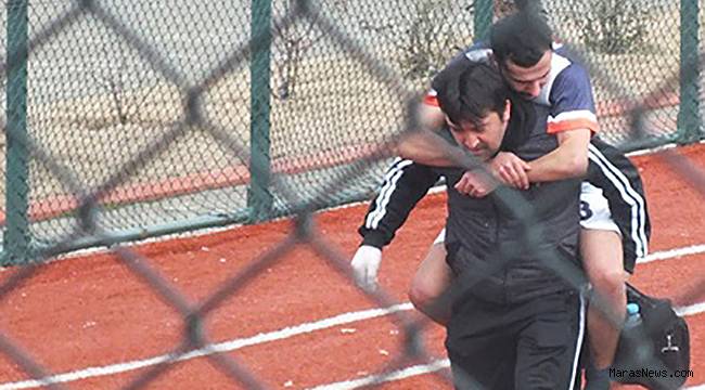 Sümerspor maçında sağlıkçı oyuncuyu sırtına alarak Maraşgücüspor'un yedek kulübesine