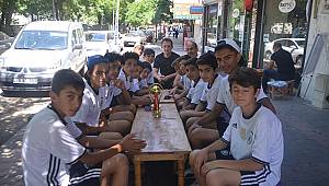 sonra Makara Cafe önünde şampiyonluk kupası ile hatıra fotoğrafı çektirdiler. (HABER VE FOTOĞRAF: İLKER YİYEN)