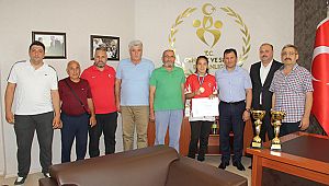 Şampiyon Judocu Kevser Dilbirliği ve Antrenörleri Hamza Selen,