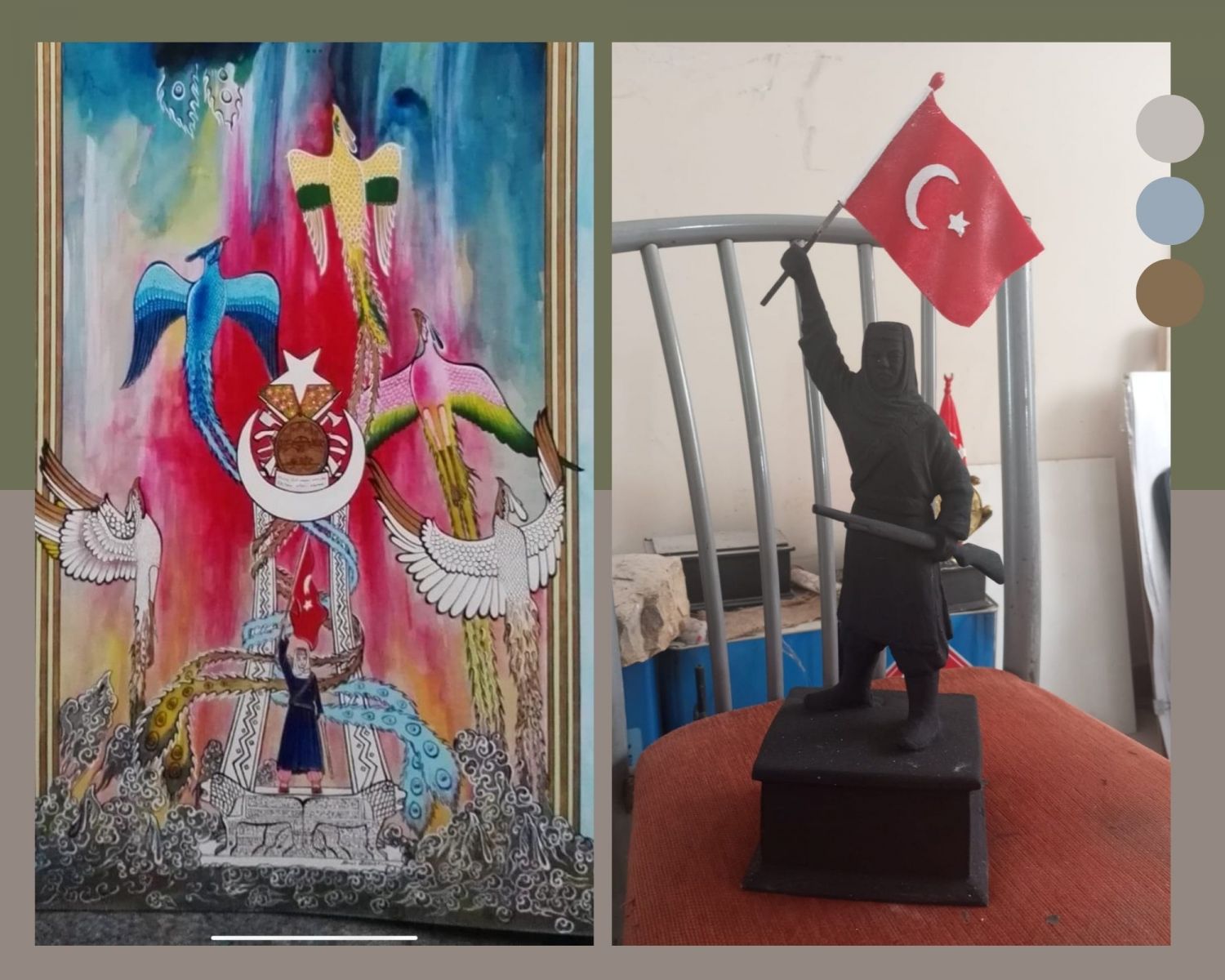 O bir ressam, bir heykeltraş, çağdaş minyatür sanatçısı, öğretim görevlisi… Birçok sanatsal unvanı taşısa da en önemlisi o bir sanat milliyetçisi aslında… Atatürk Üniversitesi Resim-İş bölümünden 2002 yılında mezun olduktan sonra memleketine dönerek bilfiil sanat faaliyetlerine başlıyor. Kahramanmaraş’ın Türkoğlu ilçesinde dünyaya gelişinden midir bilinmez ama kendisini Türk tarihi ve kültürünü yaşatmaya adıyor o. Gelenek düşkünü bir sanatçı olduğundan minyatür sanatına özellikle ilgisi olsa da gelenekseli çağdaşlaştırarak sürdürüyor sanat yolculuğunu ve “Cumhuriyet Dönemi Türk Minyatür Sanatının Özellikleri” başlıklı yüksek lisans tezinde “çağdaş” ifadesini kullanarak farkını ortaya koyuyor. Ancak bir yandan ortaya koyduğu sanat milliyetçiliği ve idealist tavrı yüzünden bir kesim tarafından kendisine alınan tavırlar, diğer taraftan ise yaşanan doğal afetler zaman zaman yoluna engeller çıkarıyor. Fakat o, şairin “Adam Ol Yeter” diye seslendiği “Engeller çıkarsa pes etme sakın/ Ölümüne giden bir tavır takın/ Kışlar bahar olur, uzaklar yakın/ Hedefe yürüyen adam ol” dizelerindeki gibi ülküsüne odaklanıyor ve hedefine yürümekle kalmıyor adeta uçuyor. Asrın felaketi olarak nitelendirilen 6 Şubat Kahramanmaraş depremlerinde atölyesi yerle bir olsa da eserlerinde sıklıkla yer verdiği anka kuşu misali yeniden doğuyor küllerinden ve azmini katlayarak, ilklere imza atarak devam ediyor yoluna. Resimle ve çağdaş minyatürle başladığı sanat serüvenini “Şehitlikleri mezar formundan çıkartmak istiyorum” diyerek anıt heykellerle taçlandırıyor şimdilik. Şimdilik diyorum çünkü heykel onun idealleri için bir zirve değil. Onun hedefi çok daha büyük, çok daha ulvî. Şimdilerde Güzel Sanatlar Fakültelerine öğrenciler yetiştiren aynı zamanda da üniversitede öğrencilerine ders veren bir hoca olarak kendisiyle; hem eğitimci hem de sanatçı duruşunu ve sanatındaki o büyük hedefini konuştuk.
