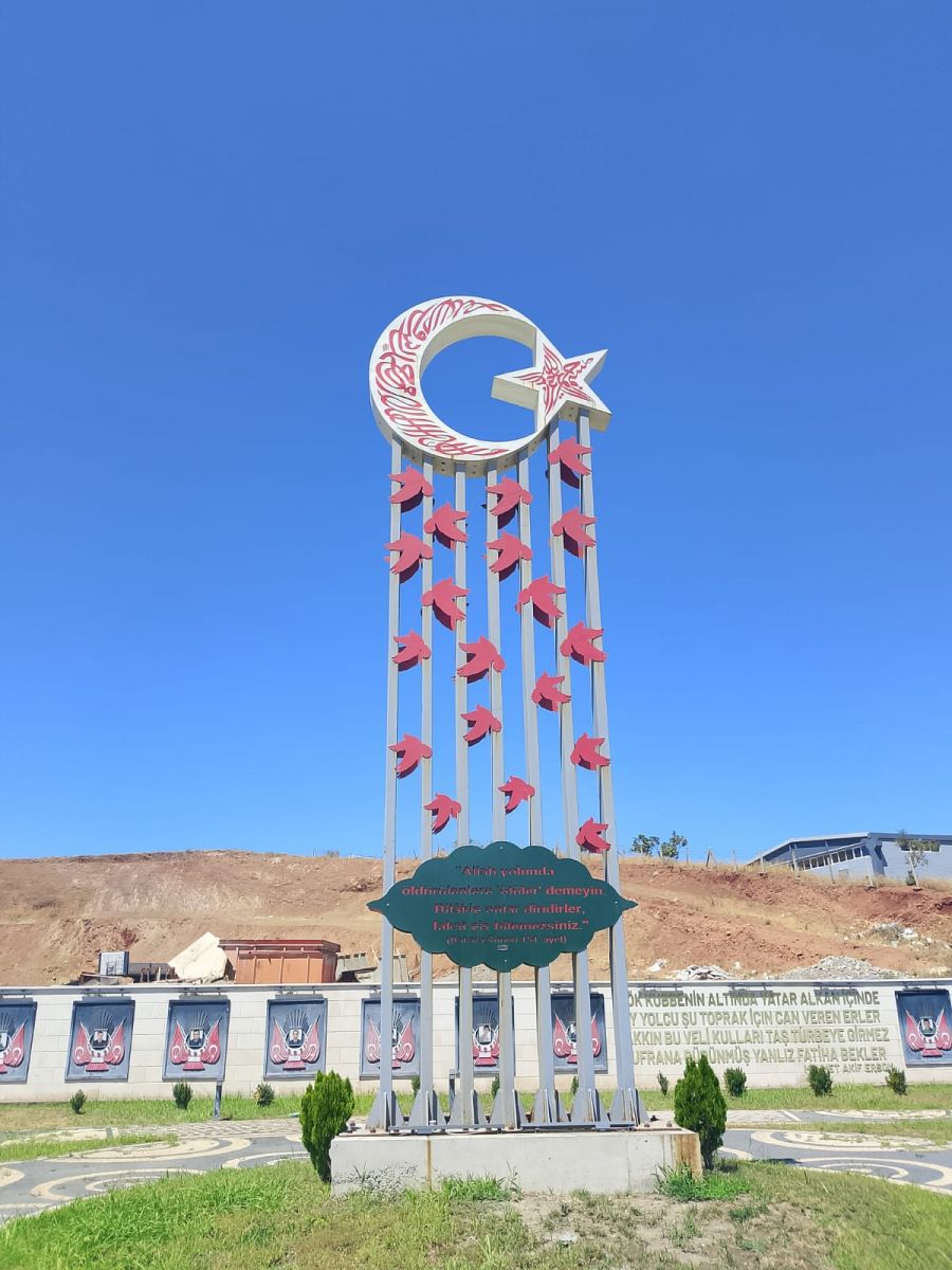Kahramanmaraş’ın muhtelif yerlerinde ilkleri gerçekleştirdiği şehitlik anıtları bulunan sanatçı Ahmet Akkurt, yaptığı bu çalışmalarıyla da buram buram Türk kültürünü yansıtıyor. Zümrüdü anka ya da Tuğrul kuşu gibi figürler kullanıyor mesela eserinde. “Zümrüd-ü Anka hiçbir zaman ölmez, küllerinden yeniden doğar. Şehitlerimiz de yeniden doğuyor. O amaçla her şehide bir kuş yaptım. Aynı zamanda kuşlar bayrağımızın rengini alıyor. Kırmızı kullanmamın nedeni de bu. Klasik bir bayrak formundan çıkmak istedim. Şehitlerin fotoğraflarının tek tek yer aldığı bir başka şehitlik yok. Genelde mermer bir taş ve taşın üzerine şehitlerin isimlerini yazıyorlar. Hilalde kelime-i tevhid, yıldızda ise besmele yazıyor” diyor. Veya asrın felaketi olarak nitelendirilen 6 Şubat depremlerinde hayatını kaybeden eğitim camiası şehitleri anısına AKEDAŞ İlkokulu bahçesine deprem şehitliği yapıyor. Minik öğrencilere de yine öz kültürlerini aşılamak için özel detaylara yer veren sanatçı, “Türk tarihinde Tuğrul kuşu çok önemli. Şehitlerimiz bizim tuğrul kuşlarımız. Onlar ölmediler. O yüzden kitap formu, tuğrul kuşu misali yükseliyor. Bir başka eserimde şehitlerimizin fotoğraflarını, isimlerini ve kısa bilgilerini içeren çalışmanın ortasına da dev Türk bayrağımızı yerleştirdik ve park oluşturduk. Bunu da insanlar parka geldiklerinde uygunsuz vaziyette oturmasınlar, dua etsinler, bir şeyler öğrensinler diye yaptık. Bir öğreti aslında yaptığımız eserler. İnsanın kendine gelmesi” diye konuşuyor.