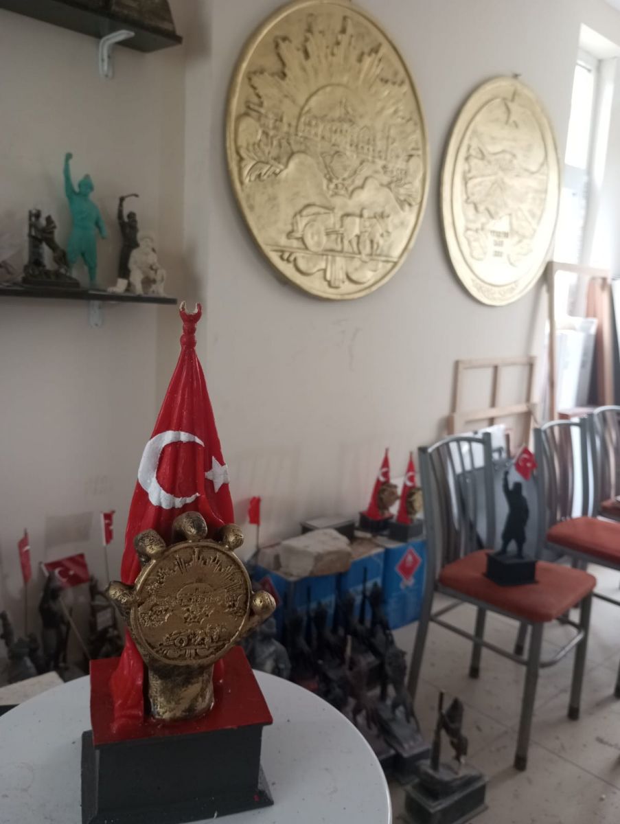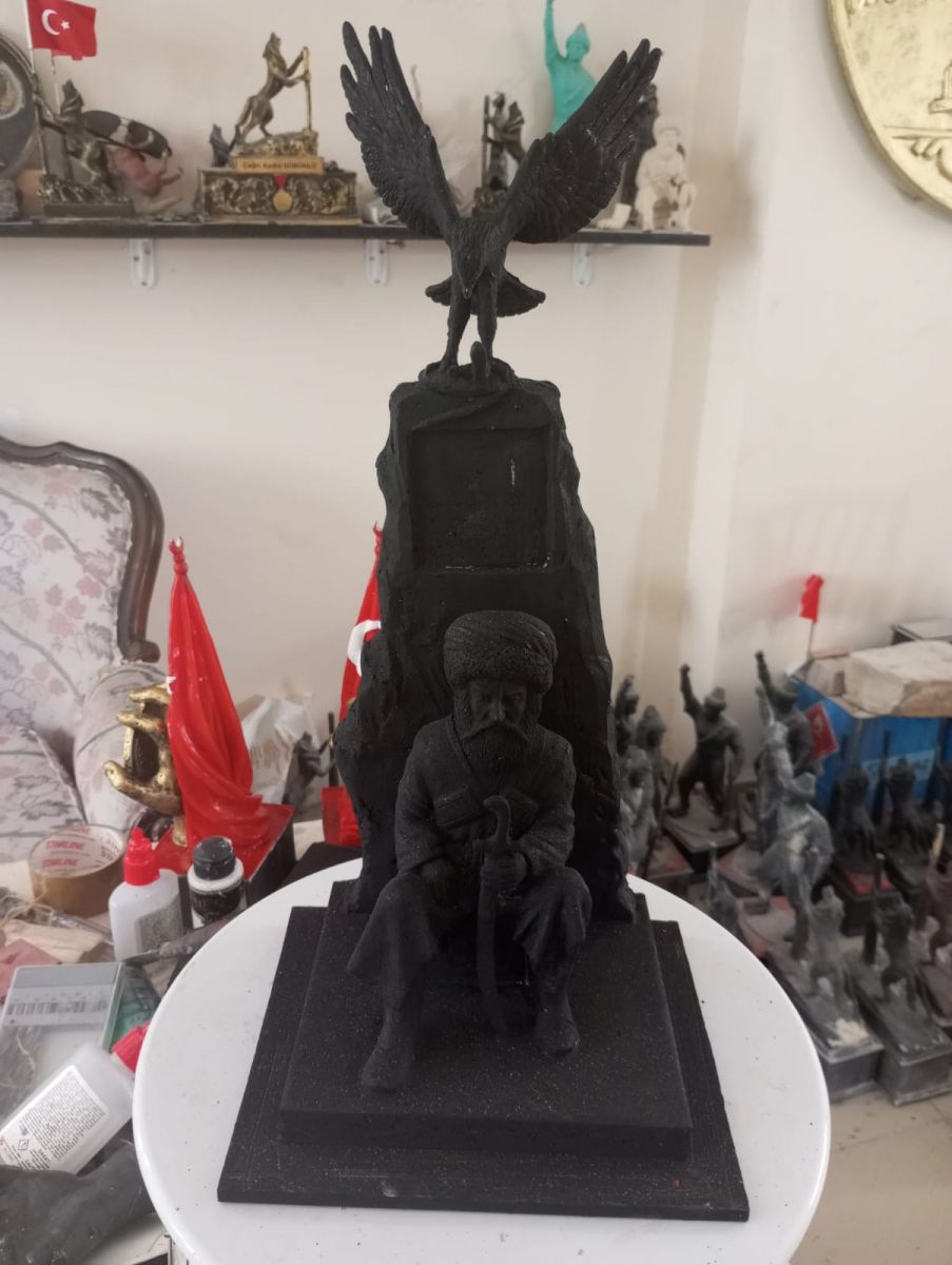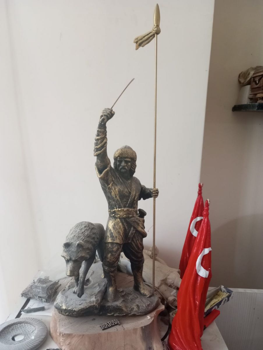 Heykele yönelme nedenlerinden birini de “daha fazla kalıcılık” olarak değerlendiren sanatçı şöyle konuşuyor, “Kahramanmaraş Büyükşehir Belediyesi’nin takvimlerine minyatür çalışmıştım. Büyük resimler yaptım mesela 3-5 sene saklanmış ama yağmur, yaş değince bozulmuş. Şimdi heykel yapıyorum. Ne yağmurda bozuluyor ne de yaşta. Heykelle doğaya açılabildim. Şehrin girişine, Türkoğlu’na şehitlik yaptık 1962’den günümüze polis ve asker şehitleri için. Üniversite’nin girişine deprem şehitleri anıtı yaptık. Üniversitenin şehit olan akademik personelleri ve öğrencileri anısına yapıldı. AKEDAŞ İlkokulu bahçesine yine şehitlik anıtı yaptık. İcra ettiğim bütün sanatlarda kesinlikle geçmişimi işlemeye çalışıyorum. Türkoğlu şehitliğindeki asıl hedefim Türk tarihi şehitliğiydi aslında. Mete Han’dan alıp Sütçü İmam’dan günümüz askerlerine gelecektim. Ama imkân ve şartlar sadece günümüzü işlememize el verdi. Ben geçmişten besleniyorum. Geçmişi modern bir şekilde günümüze yansıtmaya uğraşıyorum. Geçmişten beslenmiyorum diyen yalan söyler.”