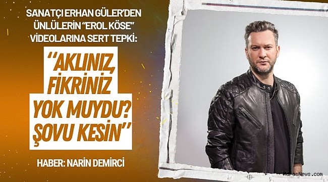 Müzik yapımcısı Erol Köse’nin 16’ıncı kattan düşerek hayatını kaybetmesinin ardından ünlü isimlerce art arda yayınlanan “Hakkımı helal etmiyorum” videoları, sanatçı Erhan Güler’i kızdırdı. Bu tür videolara yer veren isimlere sert tepki gösteren Güler, “Bıktık artık, ne bu helal etmeme videoları. Allah bilir. Kötülük yapmış olabilir, yanlış da. Siz neyin şovunu yapıyorsunuz? Sanki bu camiayı bilmiyorsunuz. Bedel ödemeden bir yere gelemezsiniz. O zaman kabul etmeseydiniz. O zamanlar aklınız, fikriniz yok muydu? Ne kadar seviyorsunuz ölünün arkasından konuşmayı, insanların arkasından atıp tutmayı. Bedel ödediniz, Türkiye sizi tanıdı. Varsa hakkınız Allah’a havale edin, O bilir ne yapacağını. Yeter artık. Her şeyi reklama çevirmeyin. Şovu kesin” ifadelerini kullandı.