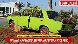 Park ve Bahçeler Dairesi Başkanlığı ekipleri tarafından Sanayi kavşağında gerçekleştirilen peyzaj çalışmaları kapsamında hurda bir otomobil çiçek saksısı gibi kullanılırken, etrafına da mevsimlik çiçeklerle bezeme yapıldı.