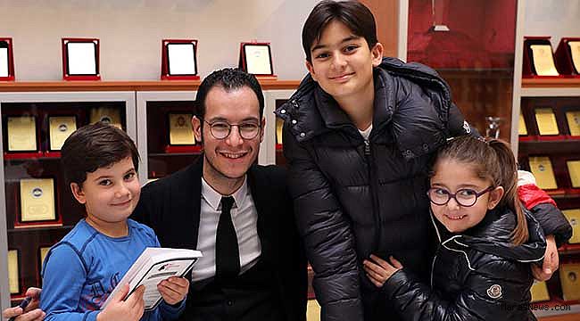 konferansın ardından öğrenciler ve velilere kitabını imzaladı.
