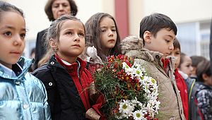 bahçesinde düzenlenen törenle andı. Okul yöneticileri, öğretmenler, öğrenciler