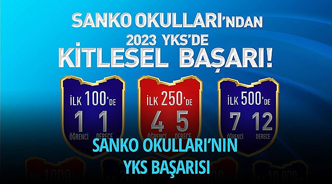 SANKO Okulları öğrencileri, Türkiye genelinde ilk 100’de 1, ilk 250’de 5, ilk 500’de 12, ilk 1,000’de 19, ilk 2,000’de 20, ilk 5,000’de 37, ilk 10,000’de 58 derece elde etti.