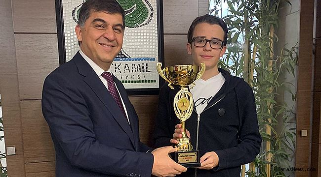 Genel Müdürü Fırat Mümtaz Asyalı, öğrencisi Kağan Aydınçelebi’yi başarısından