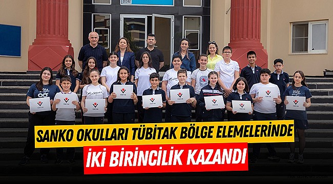 Adana Alparslan Türkeş Bilim ve Teknoloji Üniversitesi spor salonunda düzenlenen bölge elemelerinde SANKO Okulları öğrencilerinden Kerem Utku Kaleli ve Neva Doktoroğlu, öğretmenleri Fatih Mehmet Günaydın rehberliğinde hazırladıkları “Otomobil Lastiklerinden Kaynaklanan Mikroplastiklerin Kaynağında Toplanması” projesiyle Fizik Kategorisinde, Buğlem Taşkesen ve Ömer Rüzgar Özgüven, öğretmenleri Nuray Özcan rehberliğinde hazırladıkları “Görme Engelliler İçin Yüzme Sporunu Kolaylaştırma Teknolojisi” projesiyle Teknolojik Tasarım Kategorisinde bölge birincisi olarak TÜBİTAK Türkiye Finallerine katılmaya hak kazandı.