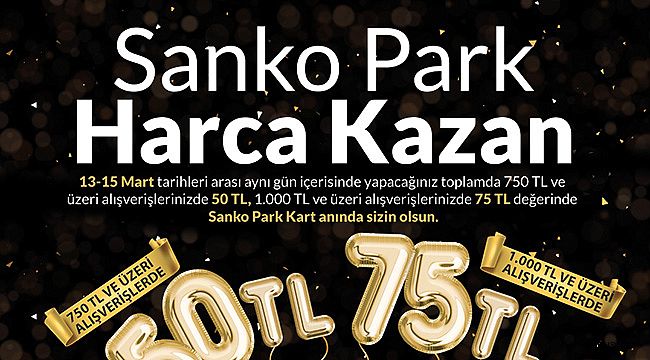 TL ve üzerinde 75 TL değerinde Sanko Park Kart kazanacak.