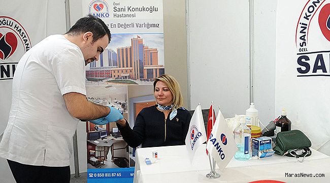 yoğun ilgi gören stantta dileyen katılımcı ve ziyaretçilerin ücretsiz tansiyon