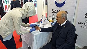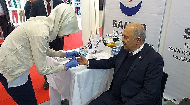 ziyaretçilerin ücretsiz tansiyon ve kan şekeri ölçümü yapılıyor. Yoğun ilgi