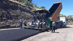 yapılan yolda asfalt serim çalışmalarına başladı.