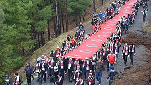 mevkinden başlayan yürüyüşte 250 metrelik bayrak açılarak sloganlar eşliğinde