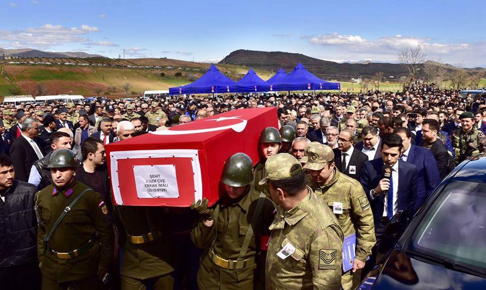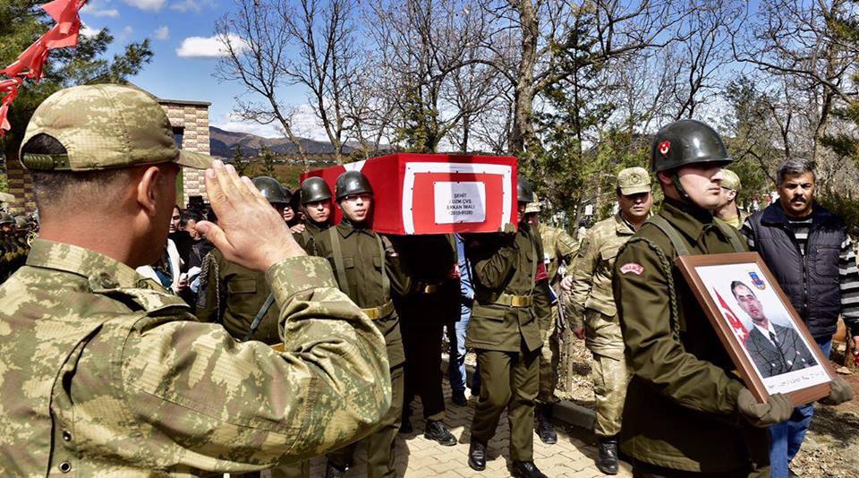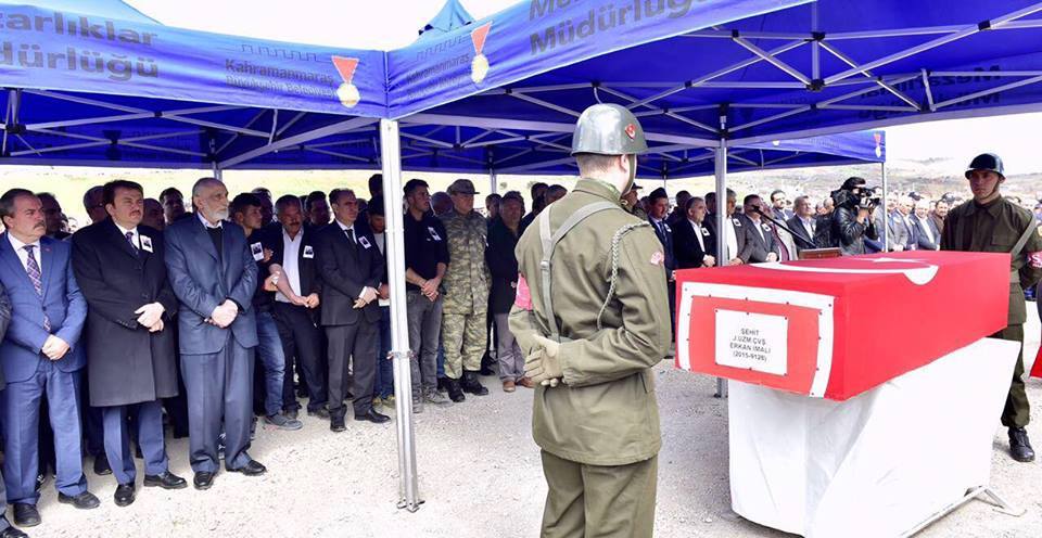 Memleketi Türkoğlu ilçesinde son yolculuğuna uğurlanan Şehidin cenazesine Başbakan Yardımcısı Veysi Kaynak, Kahramanmaraş Valisi Vahdettin Özkan, Kahramanmaraş Büyükşehir Belediye Başkanı Fatih Mehmet Erkoç katıldı.