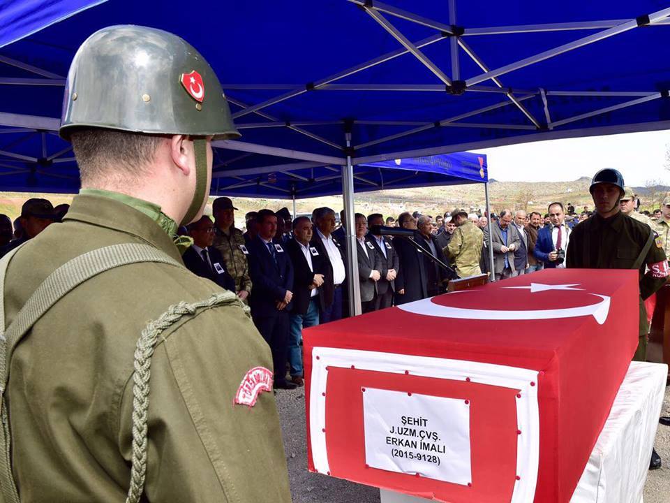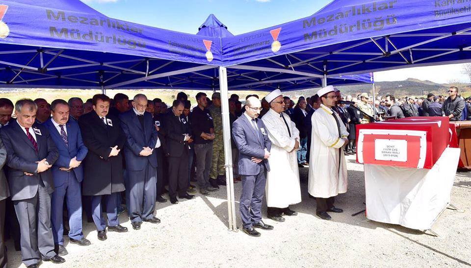 5 Mayıs'ta düğün yapacağı öğrenilen 23 yaşındaki şehit Uzman Çavuş Erkan İmalı'nın cenazesi, Türkoğlu Dr. Kemal Beyazıt Fizik Tedavi ve Rehabilitasyon Hastanesi morgundan alınarak helallik için annesi Selbi ve babası Haydar İmalı’nın yaşadığı eve getirildi. Şehidin Türk bayrağına sarılı naaşı, daha sonra Uzunsöğüt-Yeşilyöre Asri Mezarlığı'na getirildi.